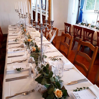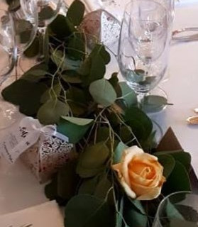 Auch zierte der Eukalyptus den Traubogen und die Bankett Tische und war natürlich auch im Brautstrauss üppig integriert.
